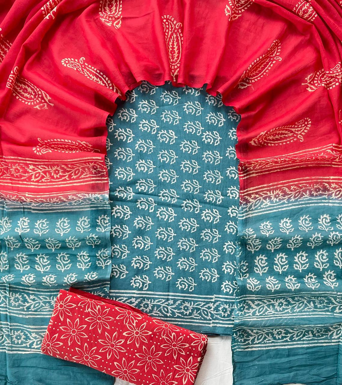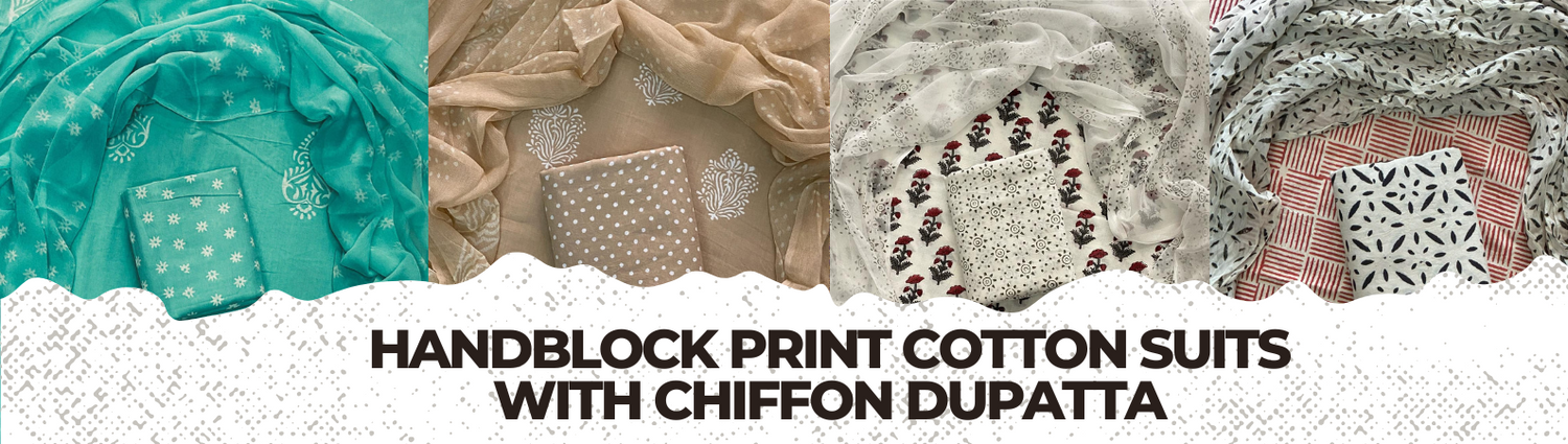 Handblock print cotton suits with chiffon dupatta