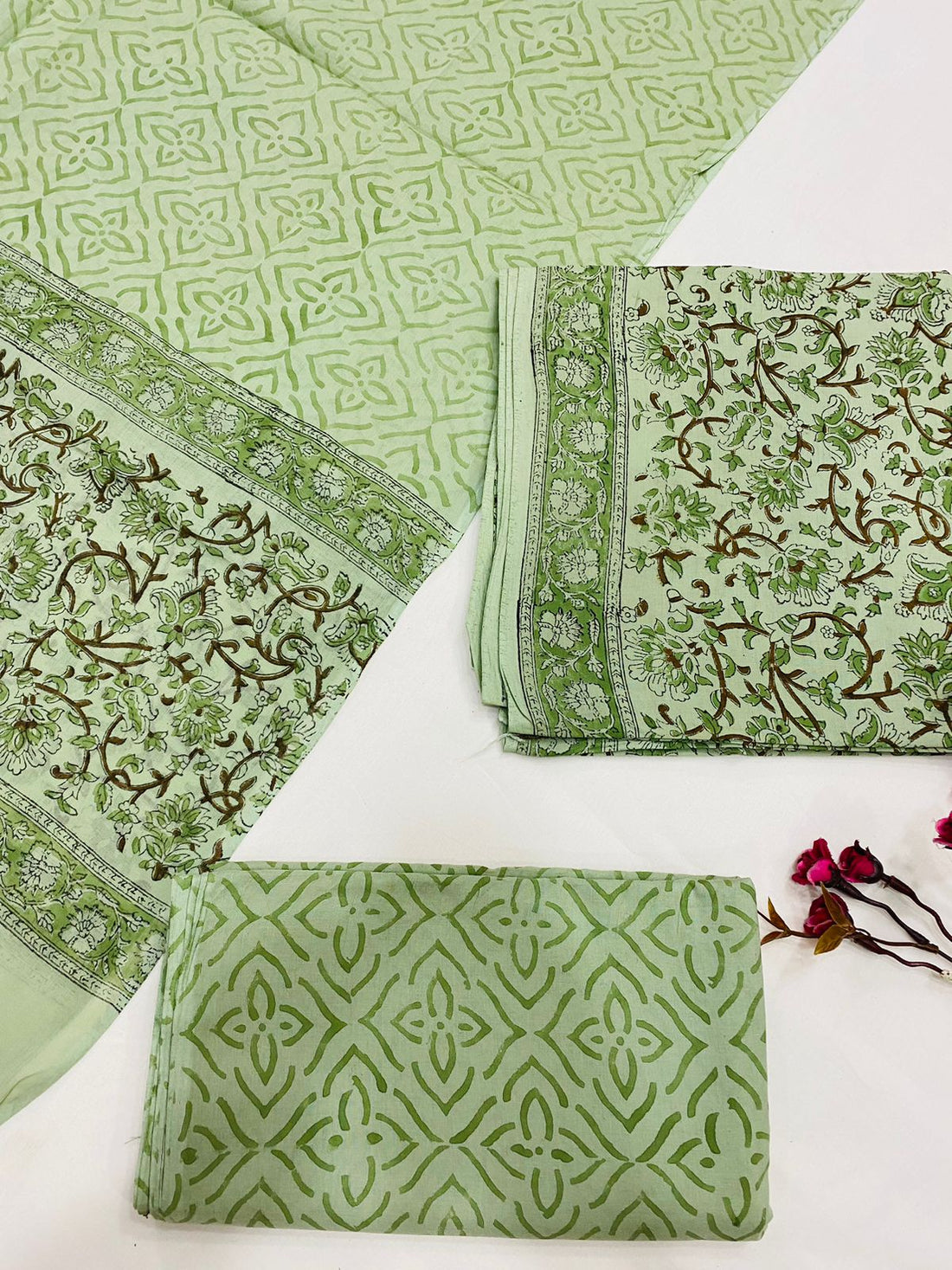 Hand Block Printed Cotton Suits With Cotton Dupatta