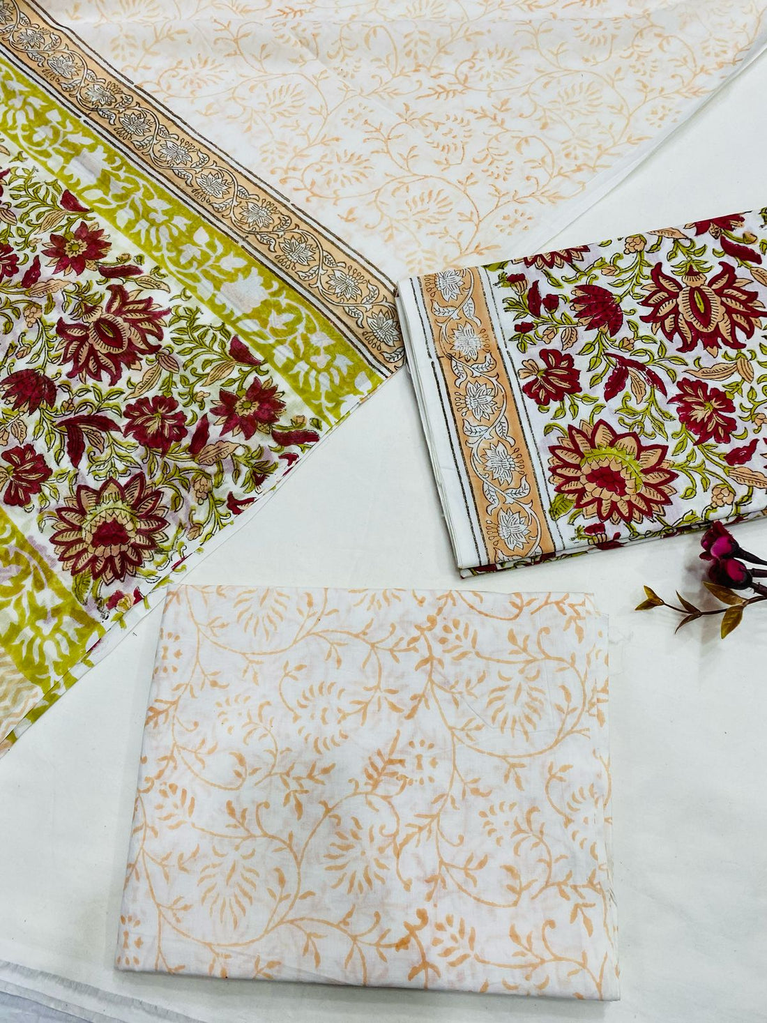 Hand Block Printed Cotton Suits With Cotton Dupatta