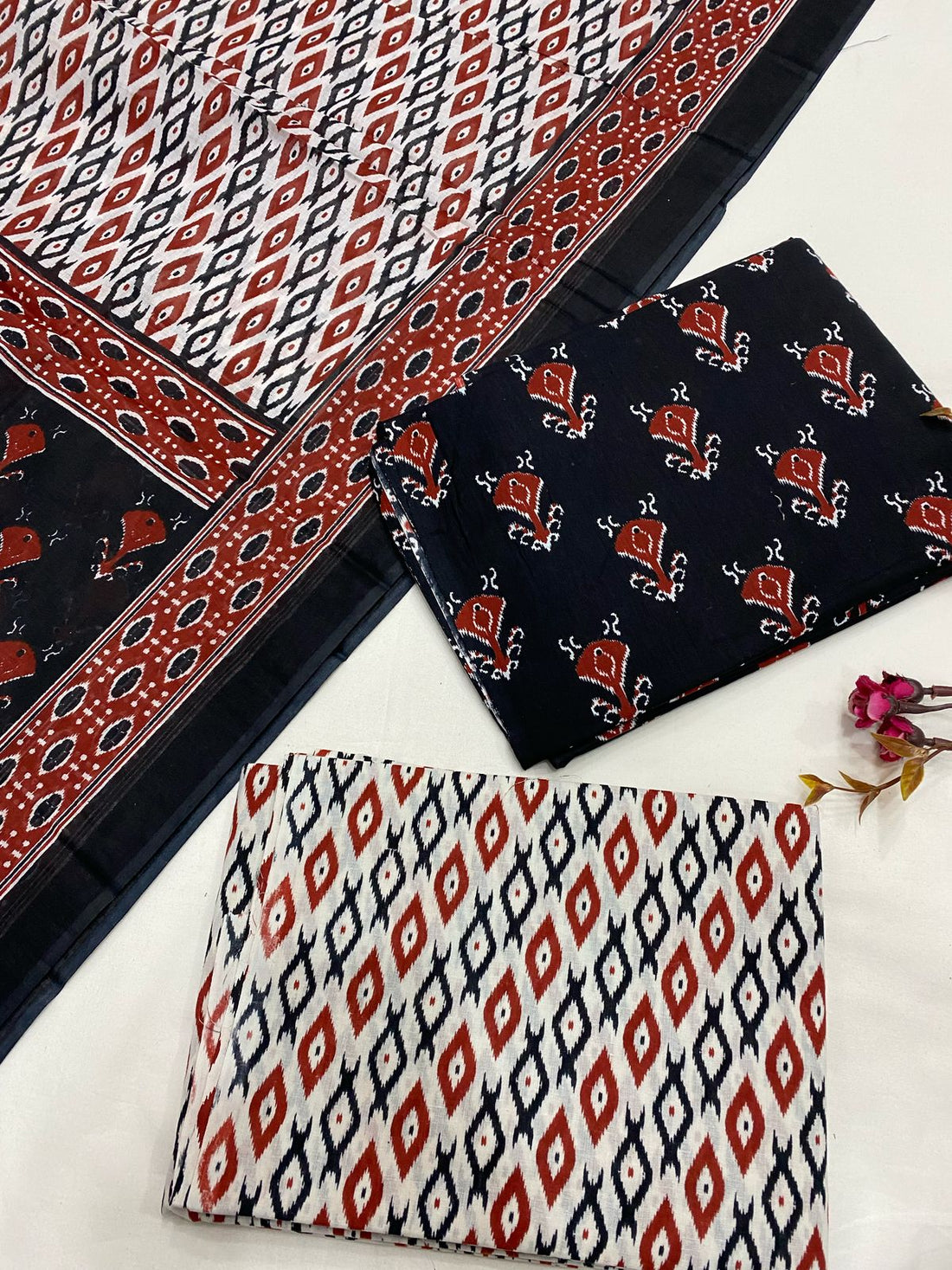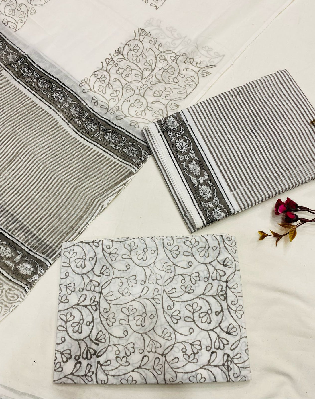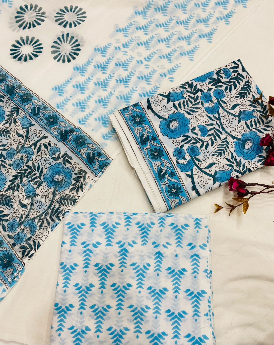 Hand Block Printed Cotton Suits With Cotton Dupatta