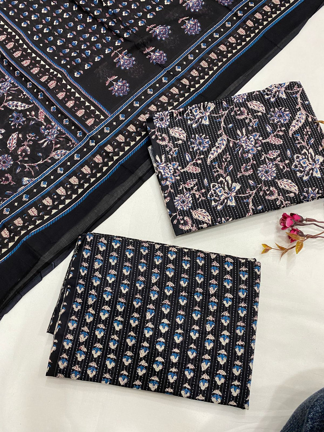Hand Block Printed Cotton Suits With Cotton Dupatta