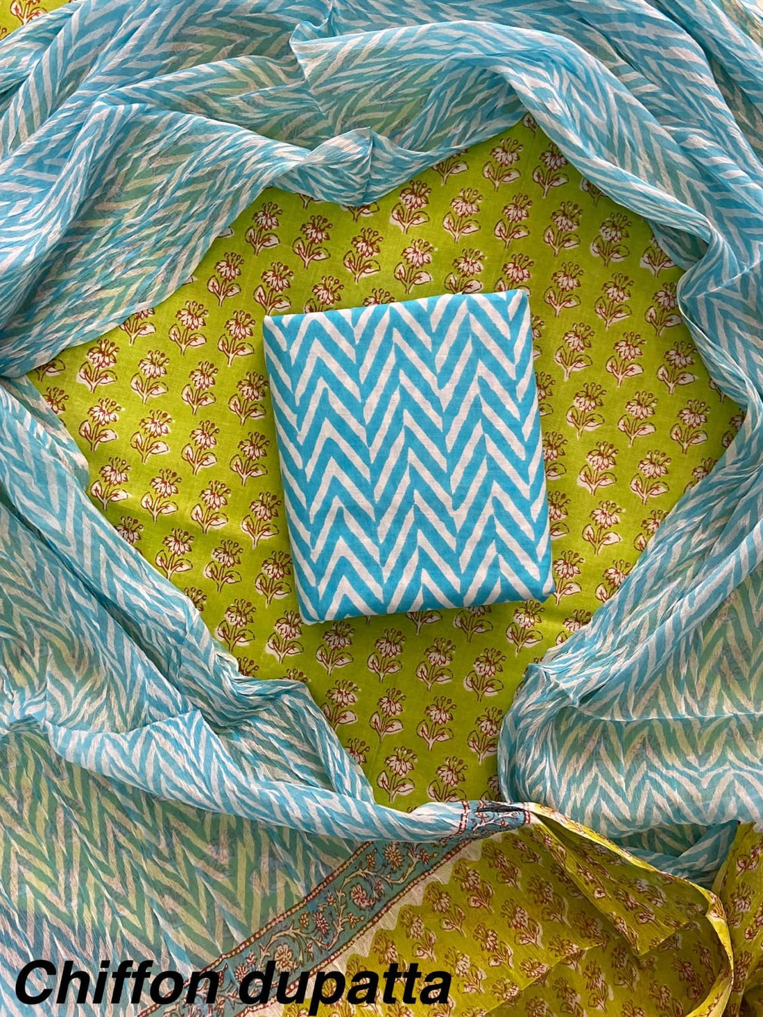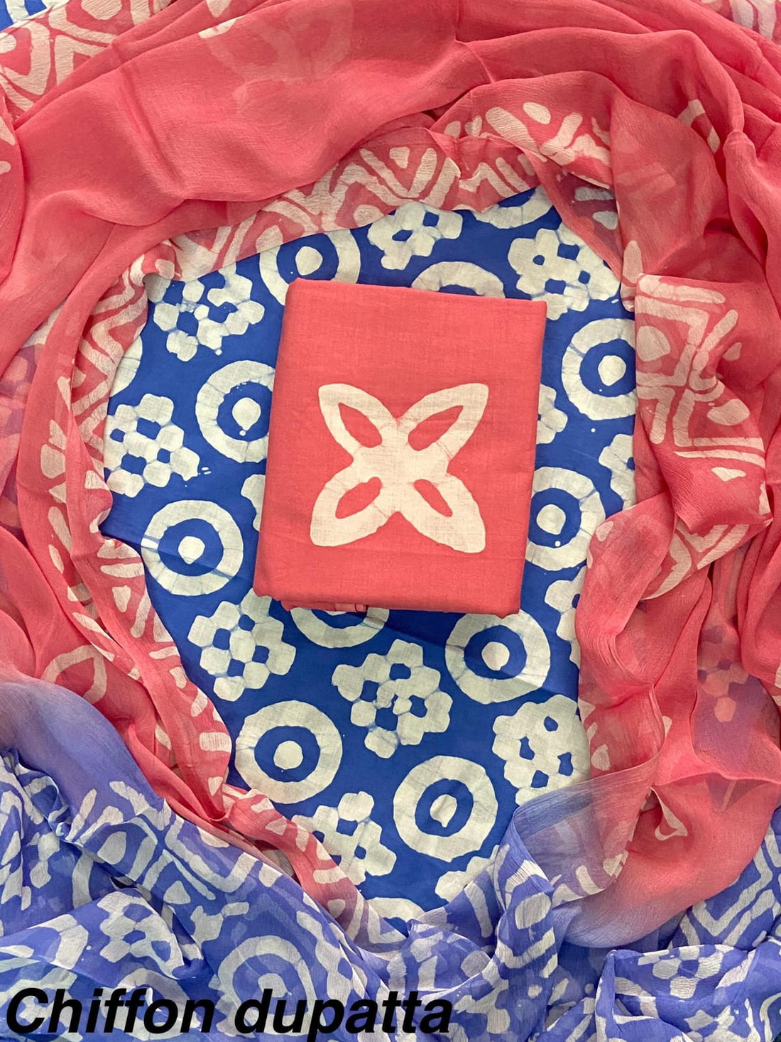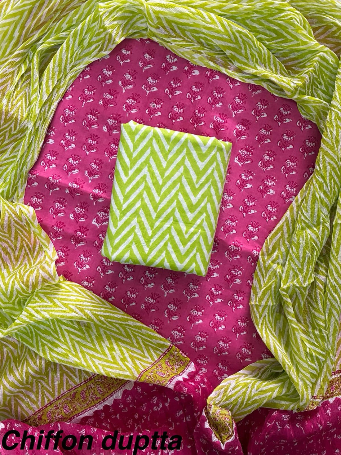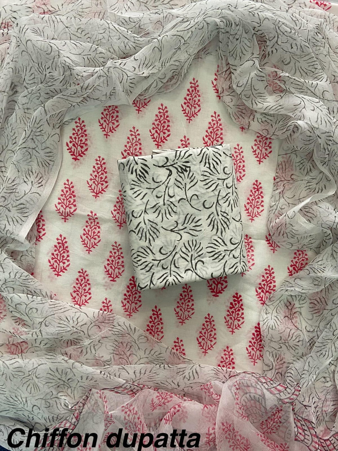 Cotton Hand Block Printed Suit With Kota Doriya Dupatta