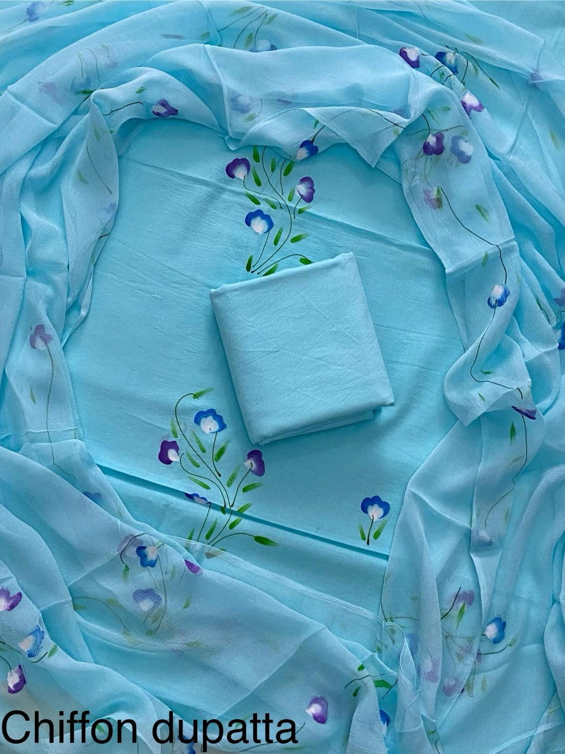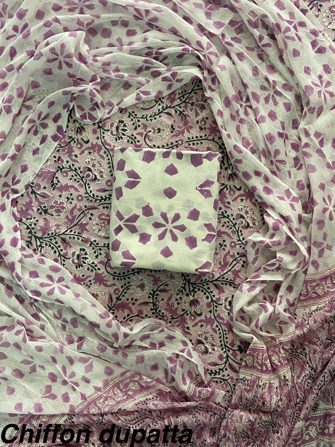 Cotton Hand Block Printed Suit With Kota Doriya Dupatta