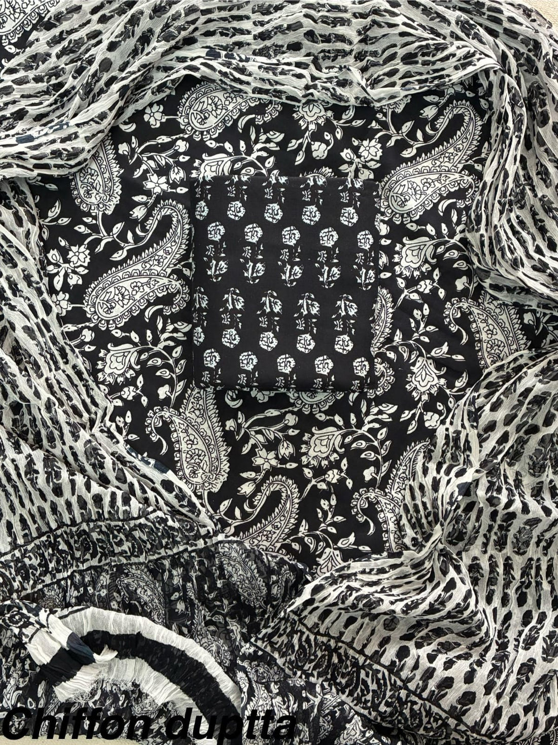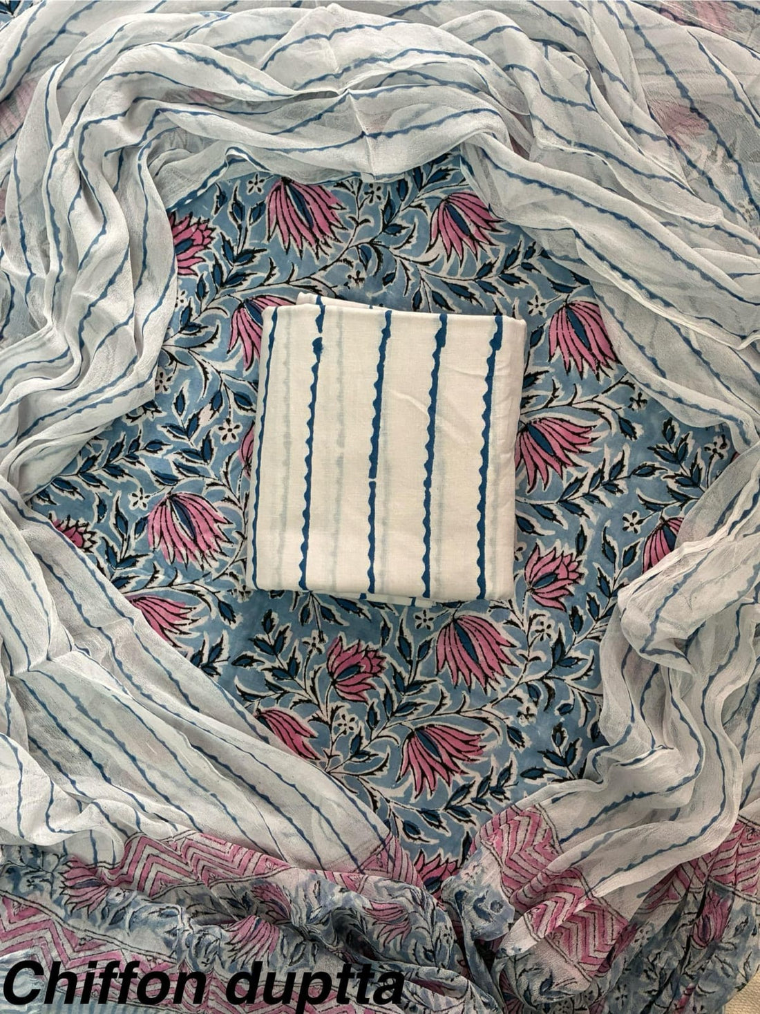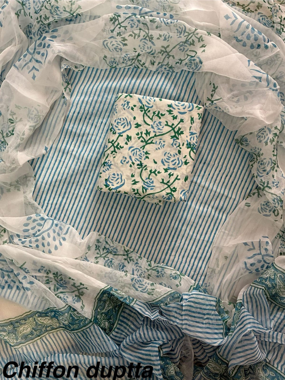 Cotton Hand Block Printed Suit With Kota Doriya Dupatta