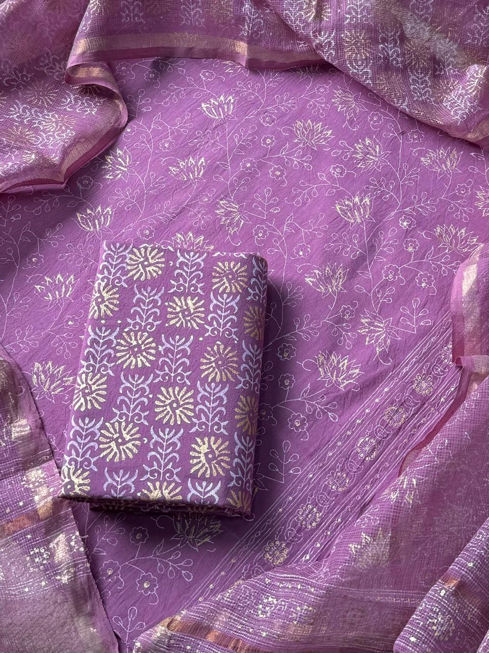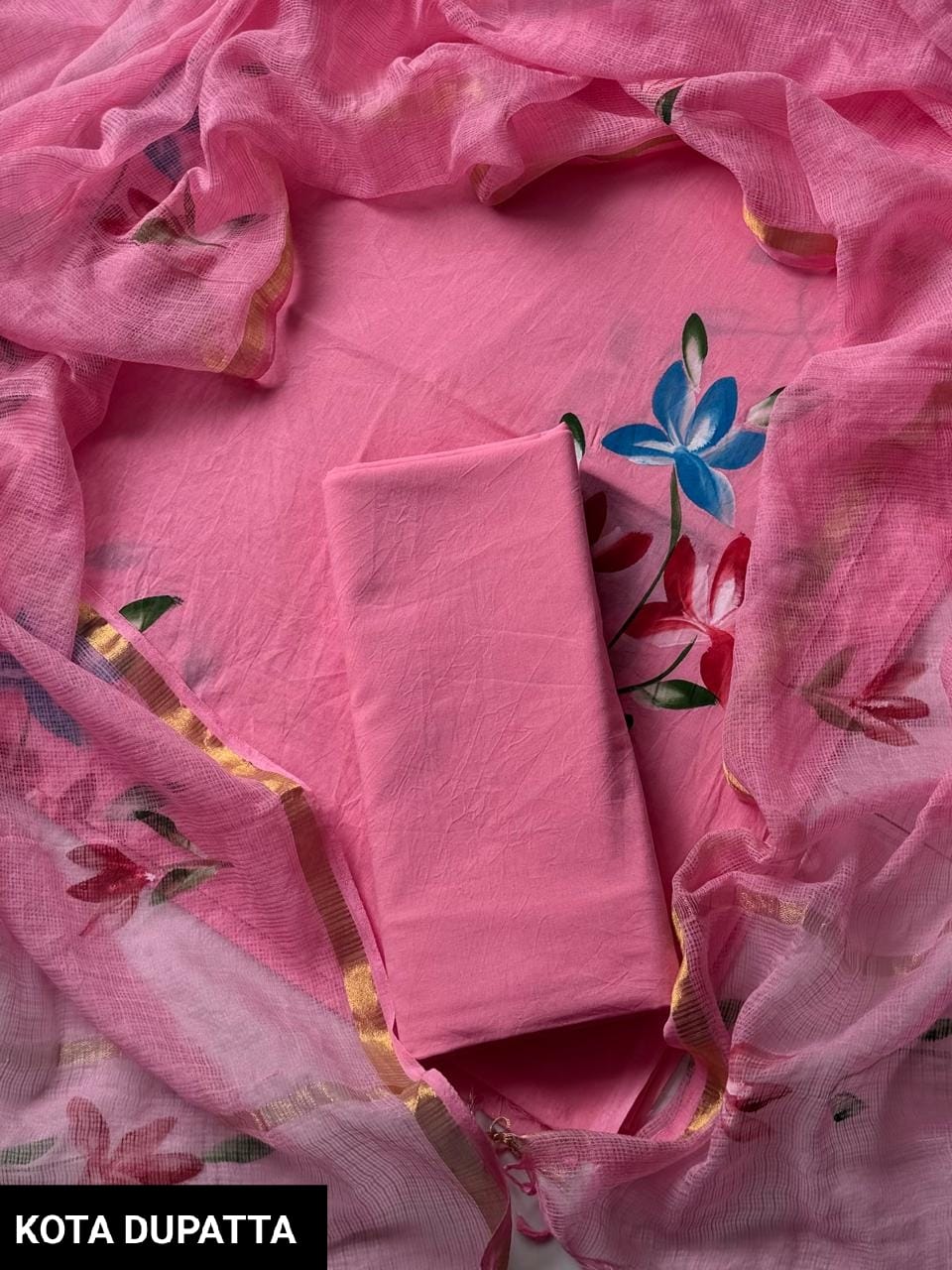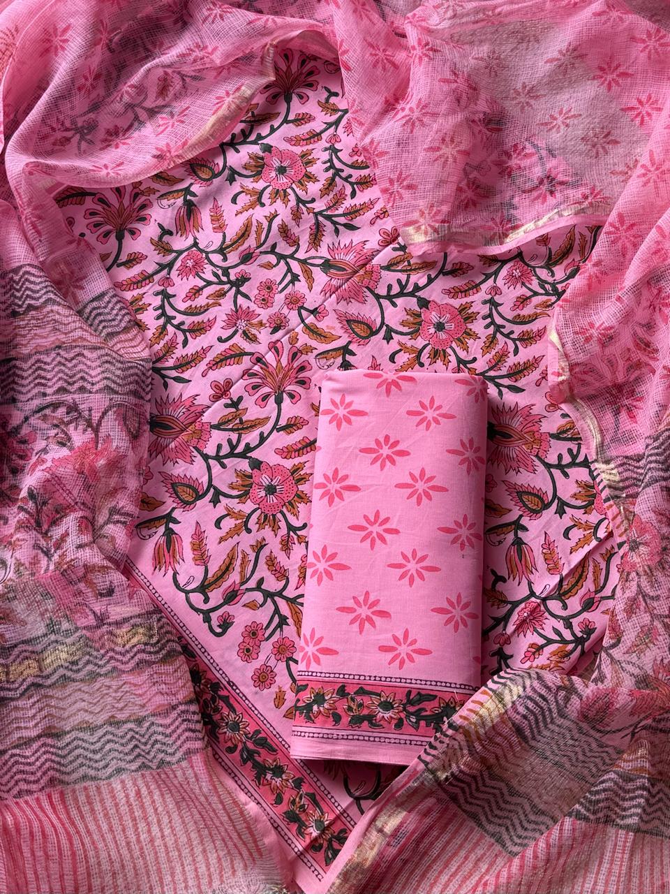 Cotton Hand Block Printed Suit With Kota Doriya Dupatta